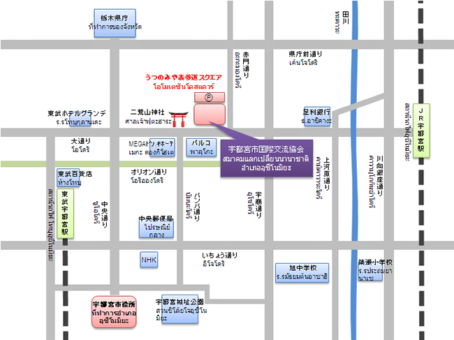 | ที่อยู่ | 〒320-0026 อำเภออุซึโนมิยะ บะบาโดรี เลขที่ 4-1-1 อุซึโนมิยะโอโมเตซันโดะสแควร์ ชั้น 5 (สมาคมแลกเปลี่ยนนานาชาติอำเภออุซึโนมิยะ) |